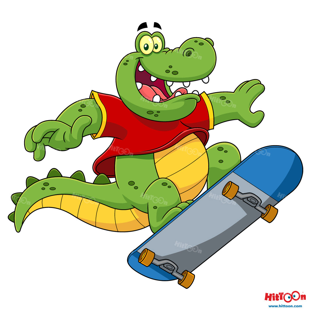 Alligator Or Crocodile Character With Skateboard